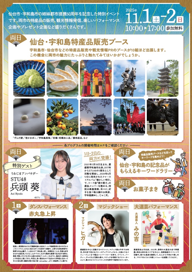 今週末、宮城県仙台市・愛媛県宇和島市の