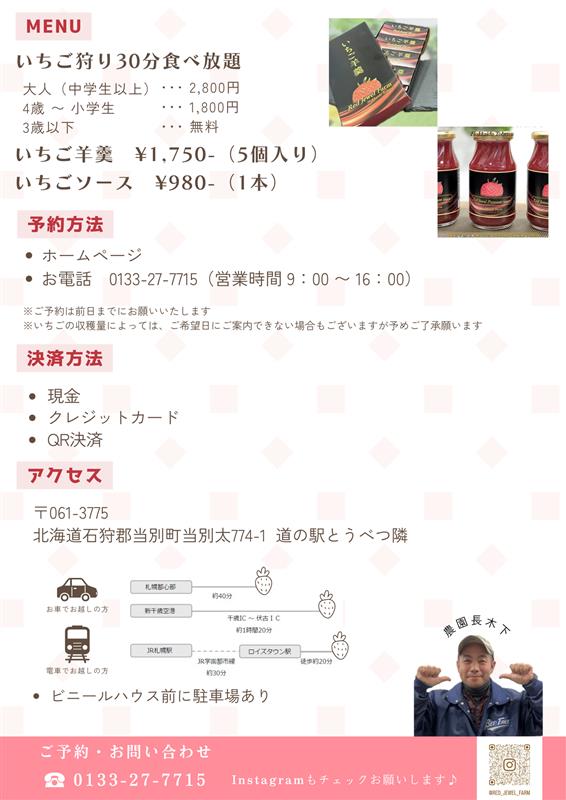 (午後)受付13:00~ いちご狩り13:30~14:00
